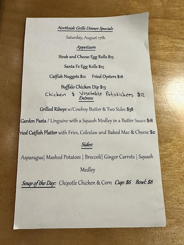 Northside Grille's menu is extensive, featuring delectable options for every palate. Popular dishes include the fried catfish platter and the signature Northside burger. Each bite guarantees freshness and flavor.